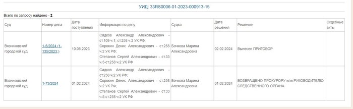 По второму уголовному делу Садков проходит по ст. 258. часть 2 незаконная охота по предварительному сговору группой лиц!!!!