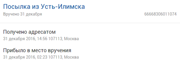 Также ушла посылочка моему санте, @TRIGUNUI, отчего-то забытым его собственным сантой. Лови её по номеру 10100008365570 через неделю-другую, надеюсь что в целости и сохранности. ;)