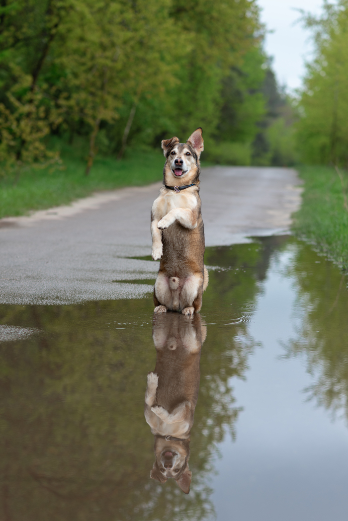 На прогулке собаки решили охладиться во всех лужах, которые им встречались по дороге. Благо впереди нас ждала речка, там хотя бы как-то отмылись хвостатые. Обратный маршрут был уже по другой тропе, но Тибо (дрт) всё равно пришёл домой грязный, как чёртик. Ну и по дороге он собрал 8 клещей.