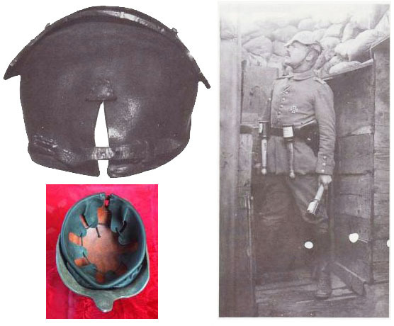 На самом деле эти самые рожки на шлемы –это была попытка ученых обезопасить солдат в новой по тем временам окопной войне. Увеличить броню и сделать шлем пригодным для повседневной носки не представлялась возможным, поэтому была разработана навесная бронеплита, которая навешивалась на шлем при окопных противостояниях.