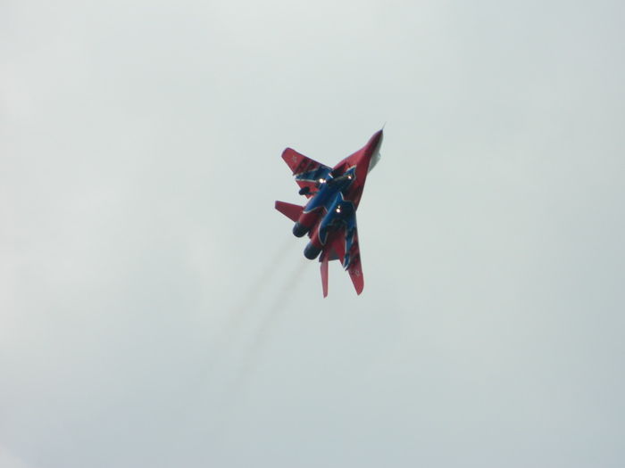 В конце авиашоу расходились Стрижи своим знаменитым "тюльпаном", который мне запечатлеть не удалось, подвели батарейки, но было очень красиво, а потом Миг-и садились по одному: