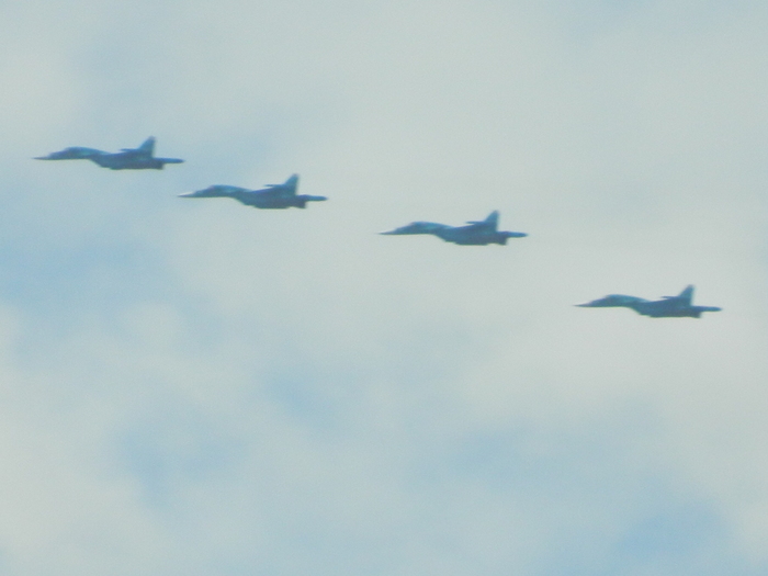 Ходили на малой высоте строем и крутили фигуры в высоте, отчего очень сильно жалеешь, что оптика слабая для чётких фотографий, поэтому снимал, что успевал: