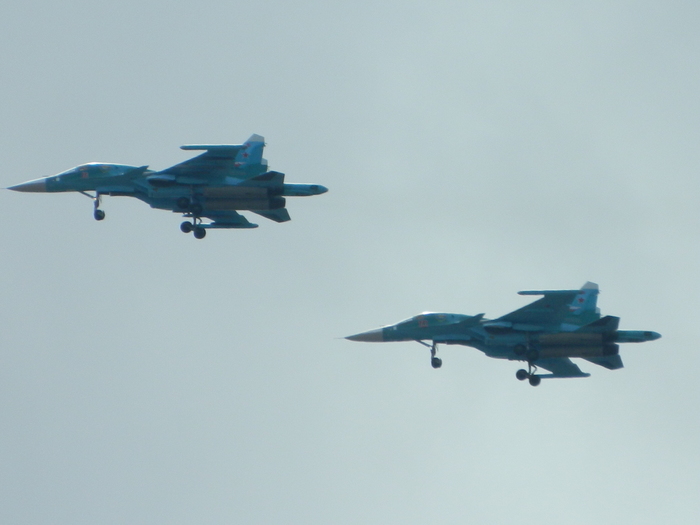 Т.к. эти бомбардировщики, в отличие от старых Су-24, имеют весьма тихие двигатели, то проход на 300м идёт без срабатывания сигнализации у припаркованных автомобилей возле дома. А вот раньше Су-24 грохотали так, что местные жители неоднократно жаловались в МО на эти безобразия. А сейчас вот такая кр-р-расота: