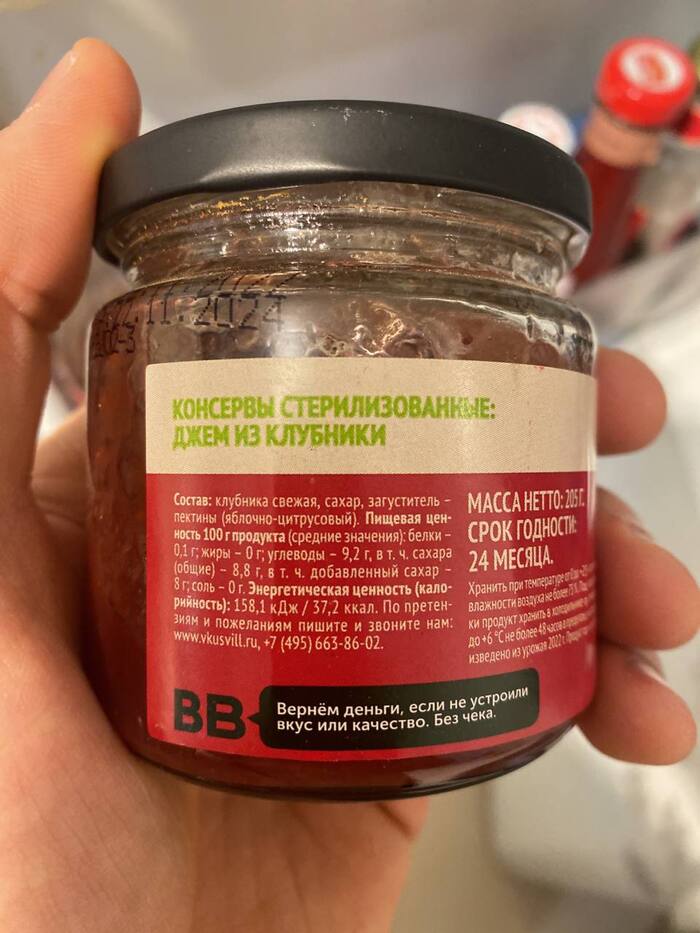 Недавно во ВкусВилле увидел "новинку" - клубничный джем, обычно я покупаю такой же на эритрите (сахзам, можно сладкого поесть на завтрак, не сильно увеличивая угли), но тут вроде с в составе сахар, а КБЖУ даже лучше (меньше углеводов на 100 гр).