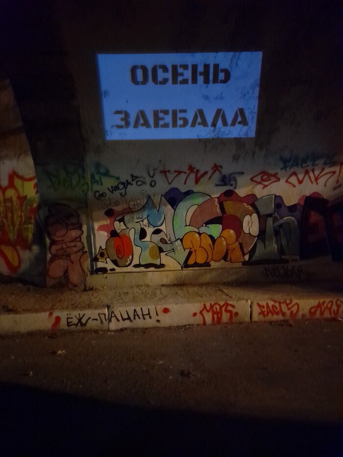 1 1pzd 10 дней назад ОСЕНЬ https://www.instagram.com/1pizdyai88/ Показать полностью 1 [моё] Граффити Проектор Трафарет Осень Отопление Холод Времена года Современное искусство Город Сентябрь Октябрь Художник Стрит-арт Вечер 3 Ещё 0