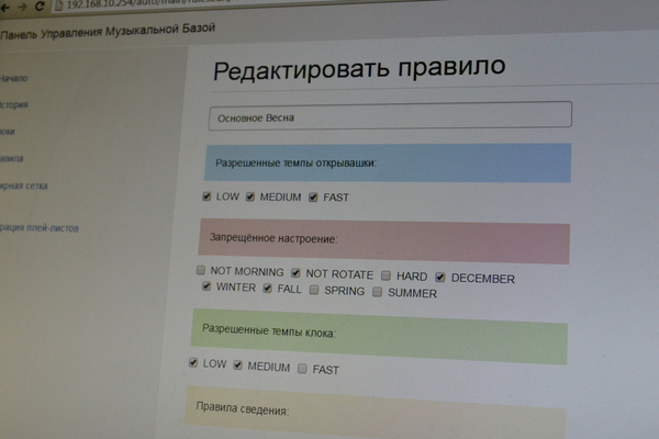 Но человек за стеклом пугает гостей. Так что теперь место в аппаратной периодически занимает музыкальный редактор. Чем он занимается? Да песенки в эфир ставит! Но не просто так, а по заранее утвержденным шаблонам и правилам.