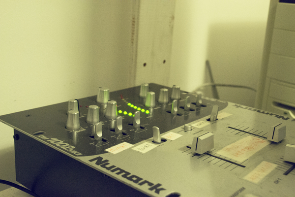 Рабочее место звукорежиссера (роль которого обычно исполняет один из ведущих) выглядит так: