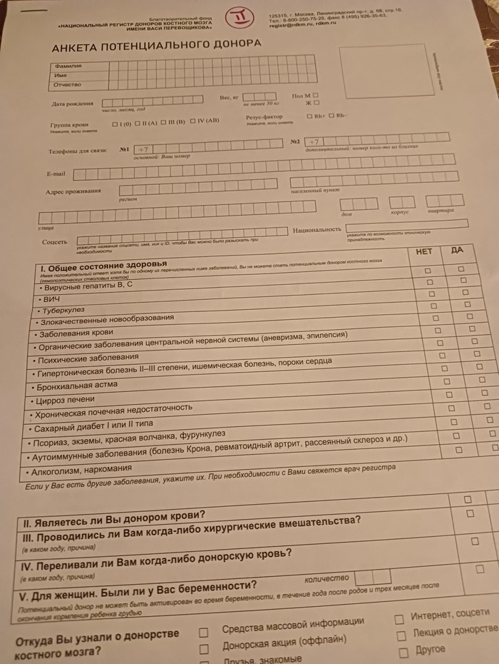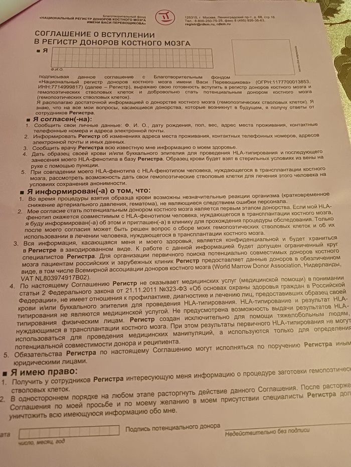 Вступление в ряды регистра доноров костного мозга