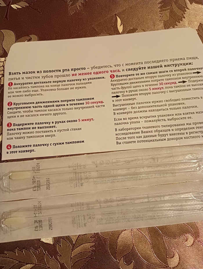 Открыв конверт я увидела палочки для взятия образцов буккального эпителия,анкеты и конверт с обратным адресом.