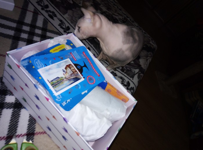 И сразу же сверху открытка из далёкого для нас города Калининграда и куча всяких разностей. И очень много кошки.