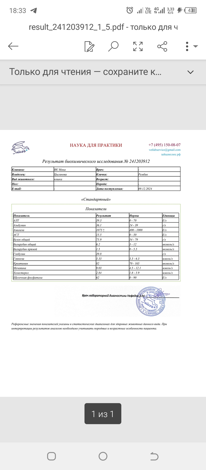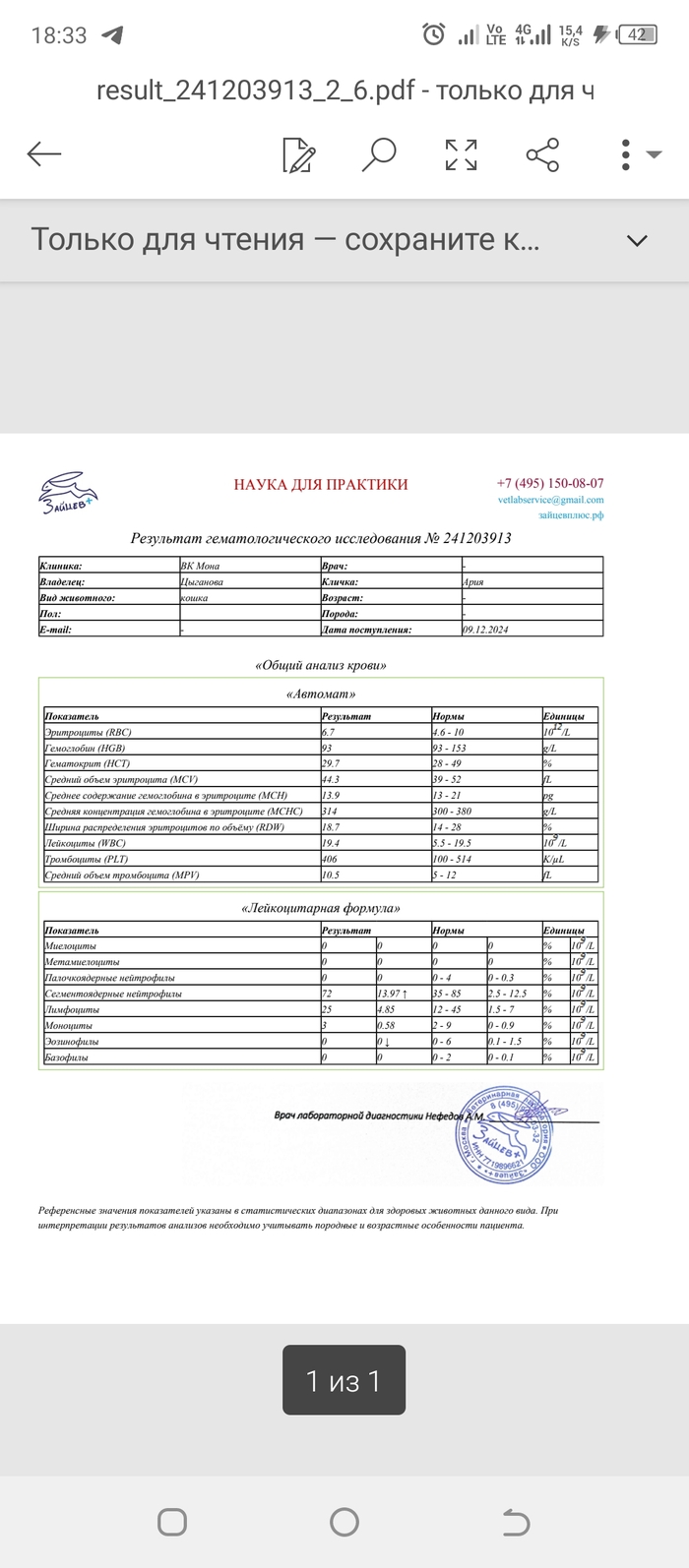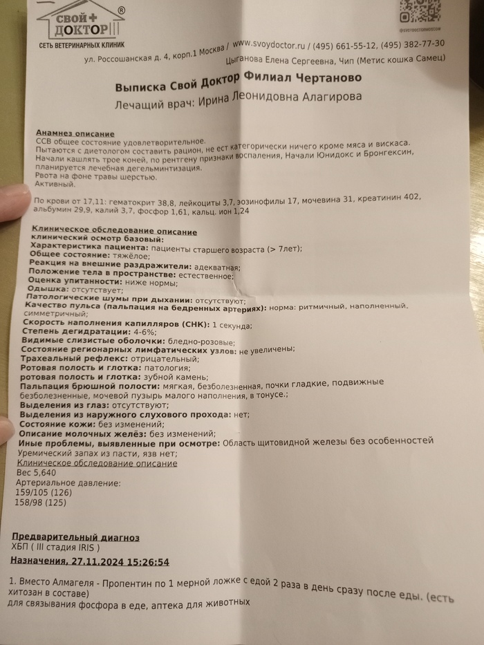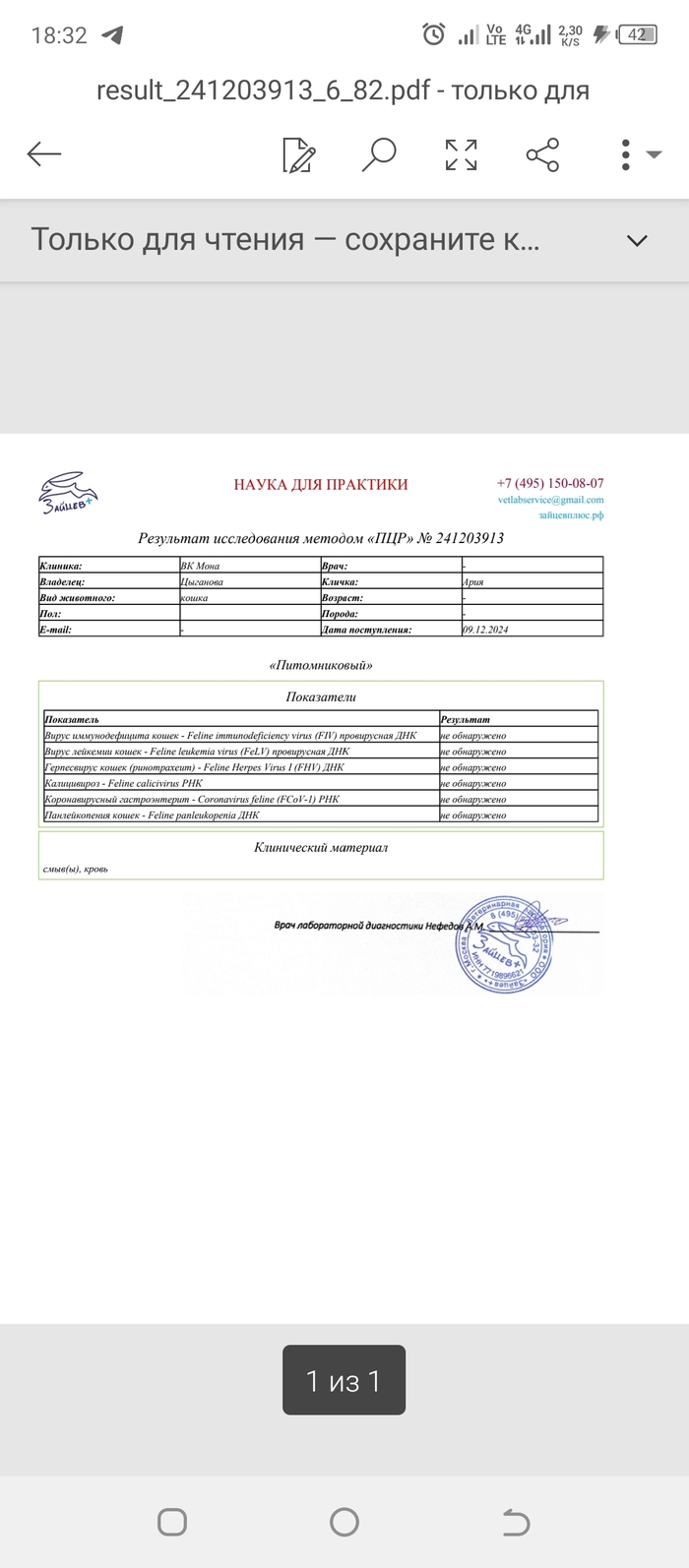 Анализы которые мы сдавали при заселении в стационар Мона, пришли хорошие, что порадовало