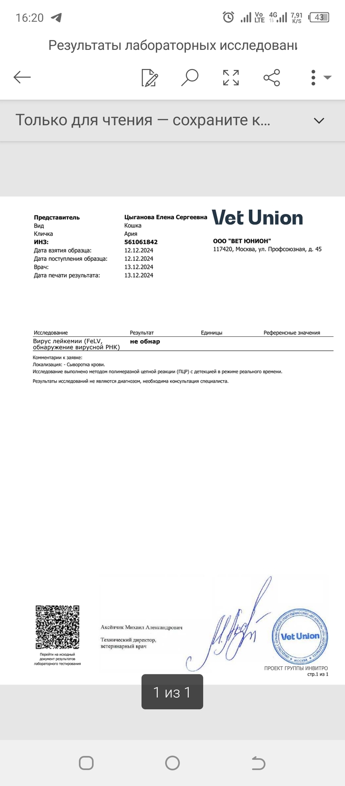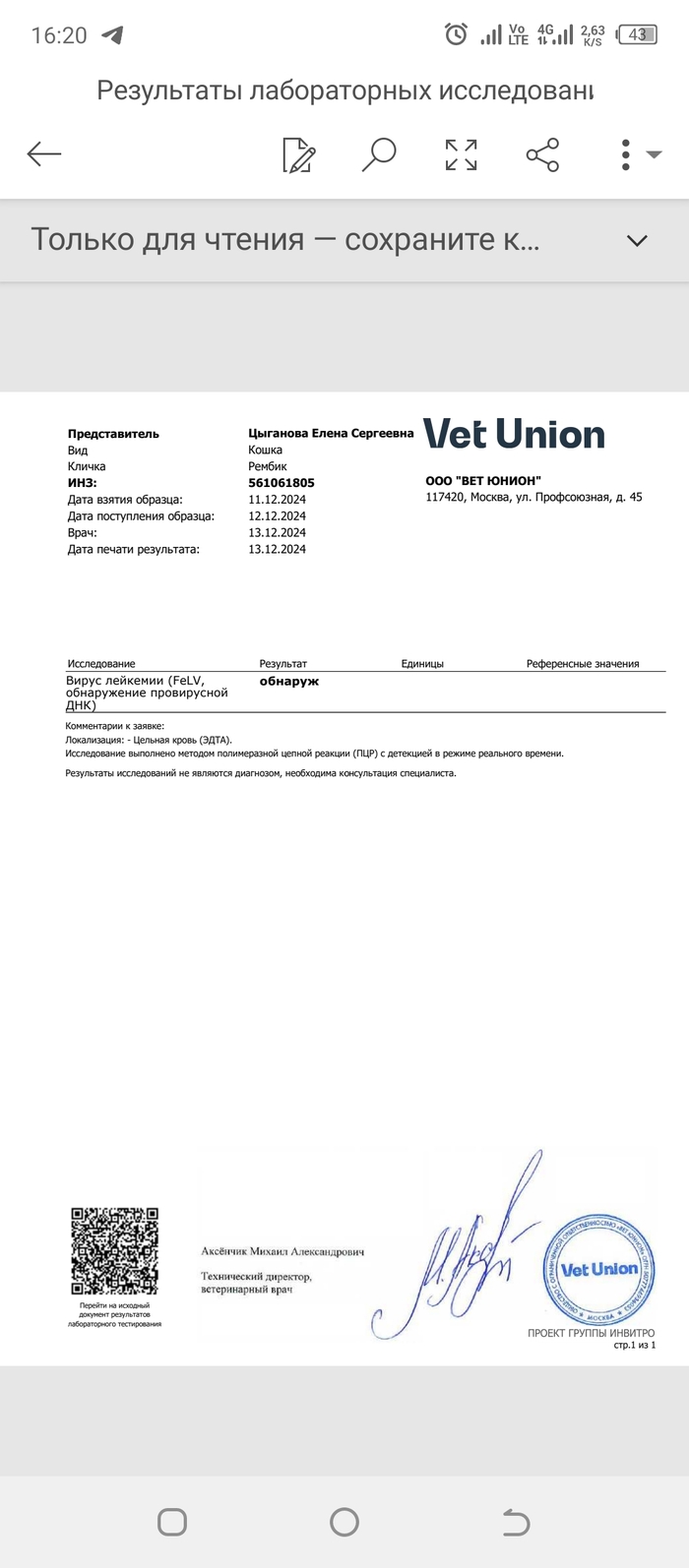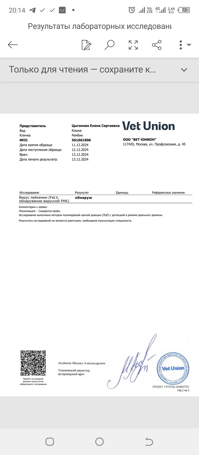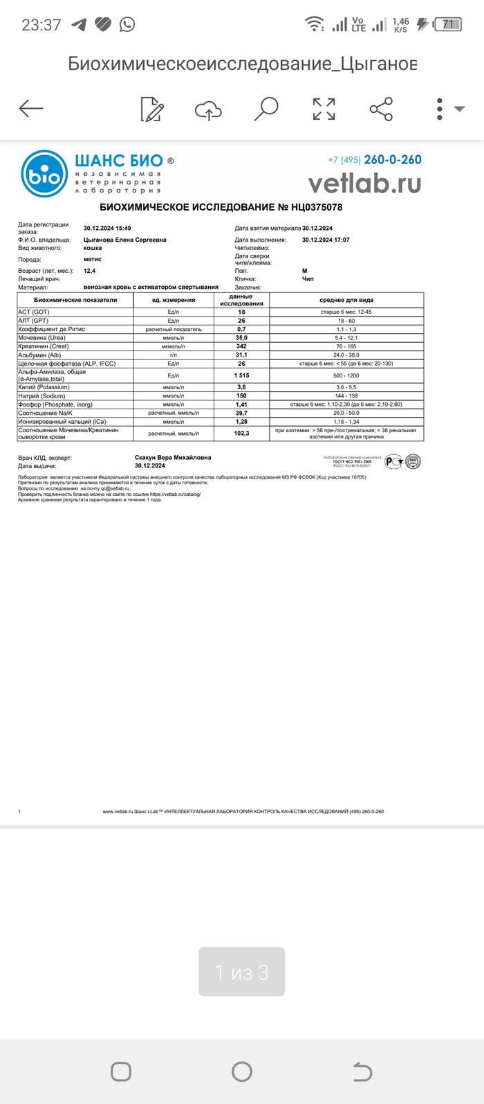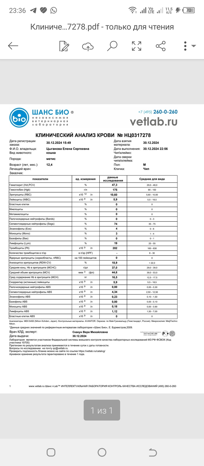 Перед заселением на передержку, мы пересдали анализы в вет юнион, т. к там принимают с анализами только от туда. И вот тут последовало огорчение...