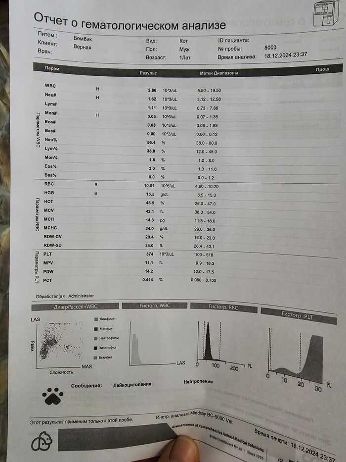 А вот по анализу крови, у него понижены лейкоциты, возможно влк выстреливет...