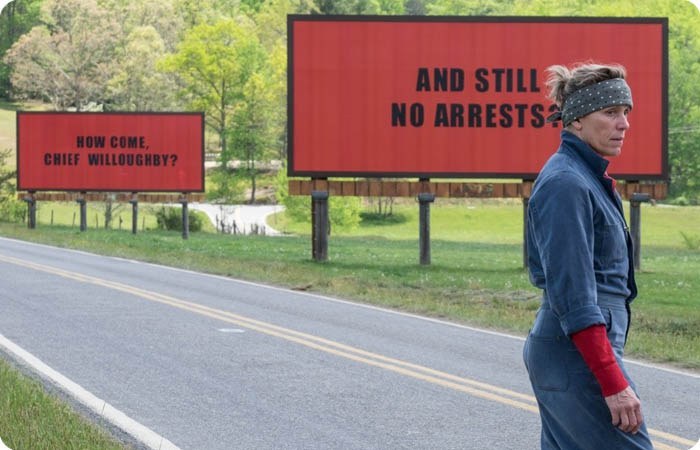 Мартин МакДона, мастер сочных диалогов и чернющего юмора, возвращается с новой картиной о противостоянии женщины с активной гражданской позицией и полицейских, а позже, кажется, и всего штата Миссури. От автора «Залечь на дне в Брюгге» и «Семи психопатов» мы вправе ожидать драматической истории, в которой обязательно найдётся место шуткам, немотивированному насилию и совершенно упоротым персонажам. В центре сюжета Милдред Хейс, чью дочь убили несколько месяцев назад. Преступник так и не ответил перед законом, а потому убитая горем мать жаждет справедливости, а ещё лучше – мести. Она поступает нестандартно и берёт в аренду три билборда на дороге. Теперь на них красуется обращение к полиции, простые вопросы к шерифу, которые задевают его за живое. Расследование, впрочем, от этого шага быстрее не пойдёт, а вот испортить отношения с соседями билборды вполне способны. С такой основой легко снять печальную историю, вышибающую из зрителя слезу, но МакДона снимает совершенно другое кино.