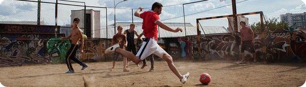 О чем: Помните знаменитую сцену из "Американской истории Икс", где белые бритоголовые молодчики играли в баскетбол с черными за право обладания спортплощадкой? Там это был лишь один ударный эпизод, здесь же подобный спор – центр всего действия, но сюжет более лайтовый. Любитель попинать мяч Костя и его друзья Серж, Мел и Танцор в футбольной коробке против профессионала Дамира и его компании. Расклад ясен?