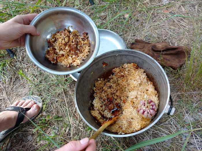 Наслаждаемся вкуснейшим пловом в компании хороших людей, что тоже является немаловажным фактором.