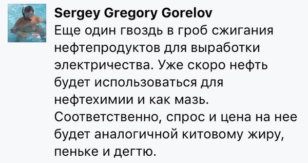 Хайтех, да. Ура. Два миллиардера попереписывались в Твиттере, и восторженные хомячки завели шарманку “Ну вот и всё… пока-пока, Газпром… переворот в мировой энергетике… очередной, 157й”. Вспоминается классический раннероссийский анекдот про торги на бирже времён 90х, где “8 миллионов за вагон мармелада”, но там было как-то честнее что ли.