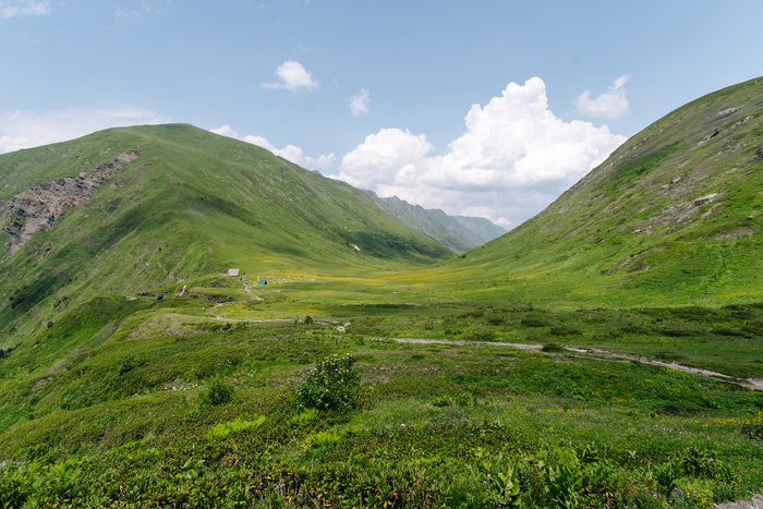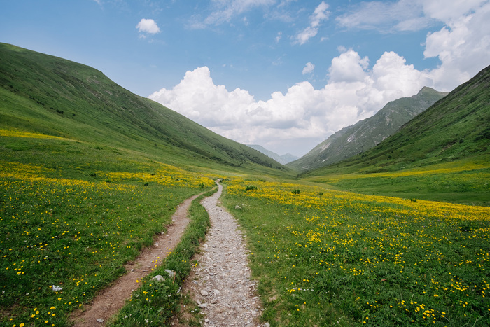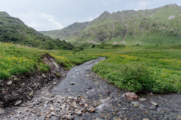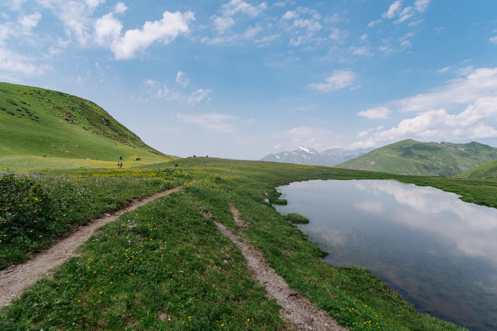 2. Бзерпинский карниз - Малое озеро. Дорога к малому озеру в долине между гор с кучей ручейков ещё красивее чем предыдущий маршрут. Малое озеро когда я дошел было мутным, но на других фотографиях оно обычно прозрачное.
