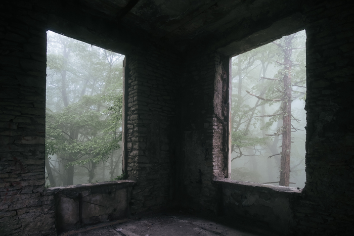 12. Смотровая на вершине г. Ахун и заброшенный ресторан рядом (в сильном тумане было интересно полазить в нем)
