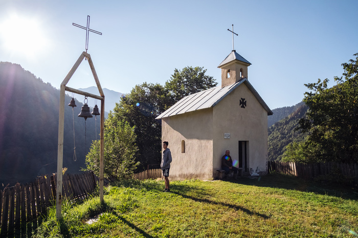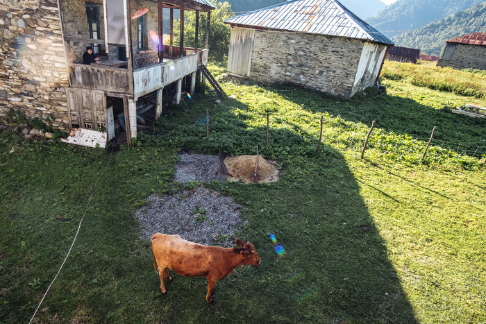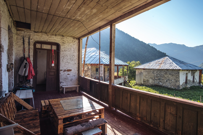 Ехали мы целый день на велосипедах по Грузии. Нижняя Сванетия райончик довольно безлюдный, ни людей, ни сотовой связи. За день из всей встретили только диких лошадей. Вся надежда была на вечер, хотели встретиться с друзьями которые путешествовали по Верхней Сванетии на машине. Доехали мы до деревушки Цана, сотовой связи здесь не оказалось. Я уже было думал проехать ещё 5 км до следующей, но поскольку уже вечерело, попробовали найти жильё у местных. Тут оказался один домик где хозяйка принимает туристов.