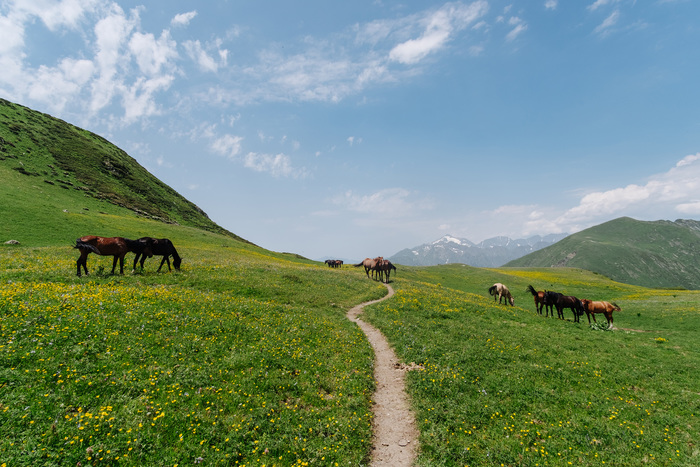 1. Подъемник Альпика Сервис - Бзерпинский карниз. Очень красивое место, можно и переночевать в специально построенных домиках если есть места или в палатке.Тут заповедник и нужно получать разрешение в заповедую зону. Ближайшее место полуения - магазин АльпИндустрия в деревне КраснаяПоляна в 6 км от подъёмника(Не РозаХутор!). К сожалению процесс получения разрешения как всегда сделали через жопу и вместо того чтобы его получить сразу при покупке билета на канатку, приходется ехать в какие-то ебеня. Через гору Табунная идти дальше, но интереснее - встретились пасущиеся лошади возле небольших озёр