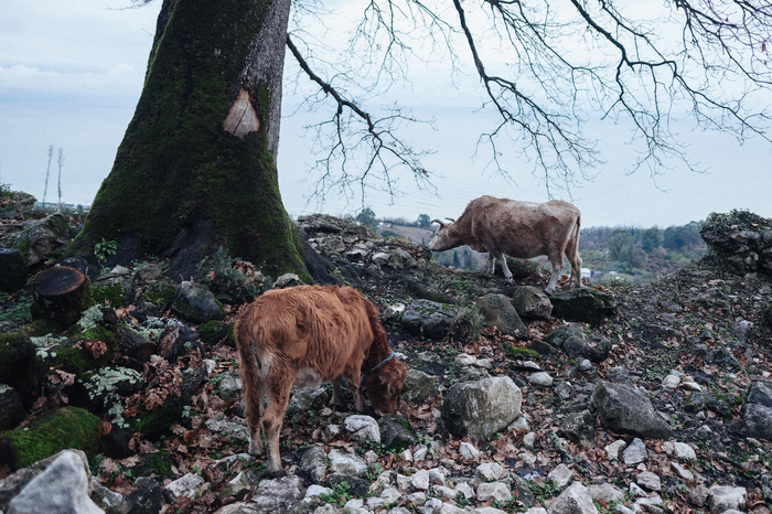 Подъём очень засран животными, не вляпаться в какаху, особенно в темноте, очень сложно. Уж не знаю почему, в той же Грузии на улицах пасущихся животных не меньше чем в Абхазии, а какашек от них существенно. Здесь же, даже находясь в городах нужно постоянно смотреть под ноги.