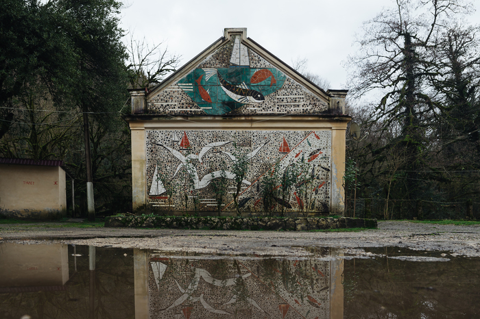 Утром решаем дойти до берега моря. Разрушенное здание на фото, как потом оказалось это Лаборатория №5 НИИ-400 в которой производились торпеды и хранятся до сих пор. Не смотря на кажущуюся полную заброшенность с одной стороны на улицы горела лампочка, стояли стулья, столик, но людей - никого