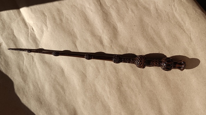 Это будет немного грустная история. Заказали, значит, палочку Гарри Поттера. Что ж, делаю, покрываю полимером, сушу, шлифую. Пришло время покраски. И тут я что-то затупила. Вроде палочка двухцветная, а будто бы "канона" у нее нет (кроме сердечной жилы дракона, конечно же).