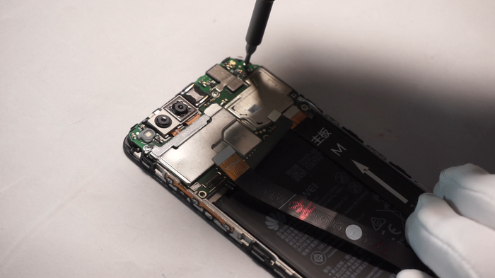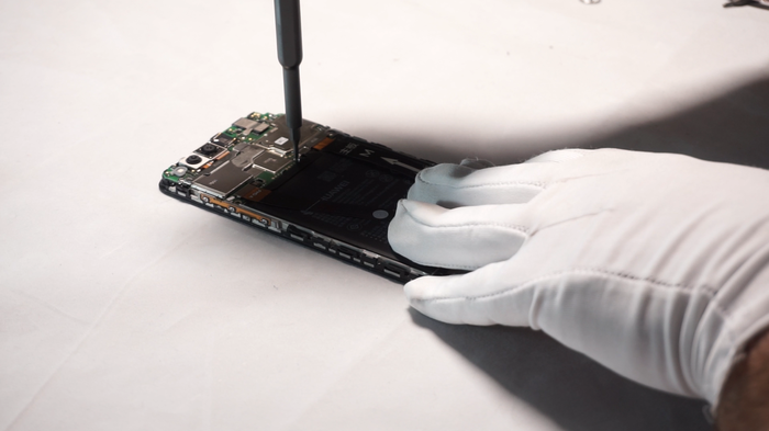 Как мы можем наблюдать, основная плата смартфона сидит на 8 винтах. В свою очередь нижняя суб-плата смонтирована на 6 винтах.