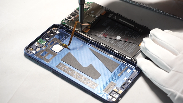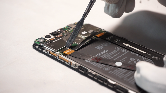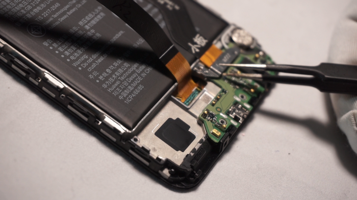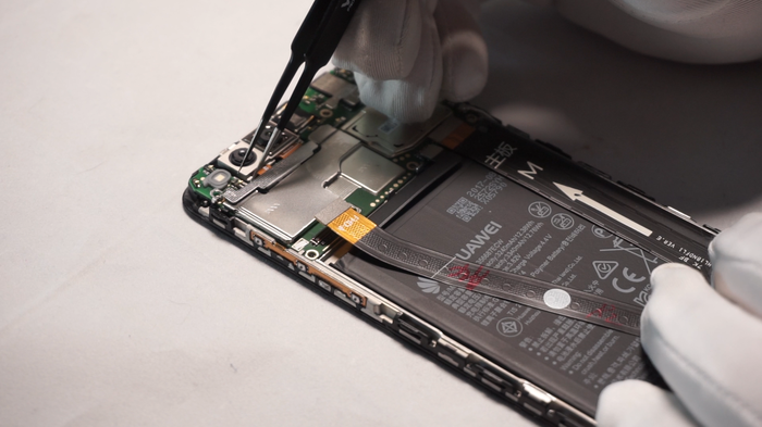 Поочередно размыкаем шлейфы нашего Mate 10. Удалим лоток для сим-карт.