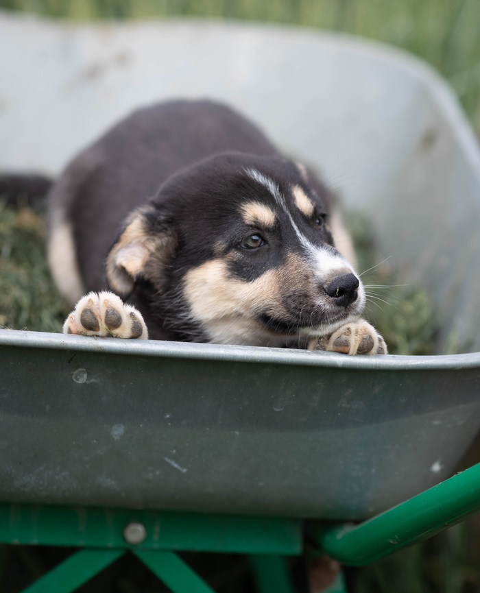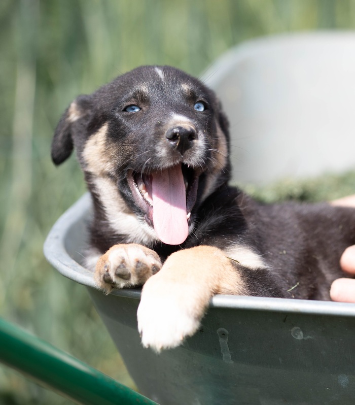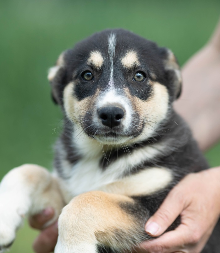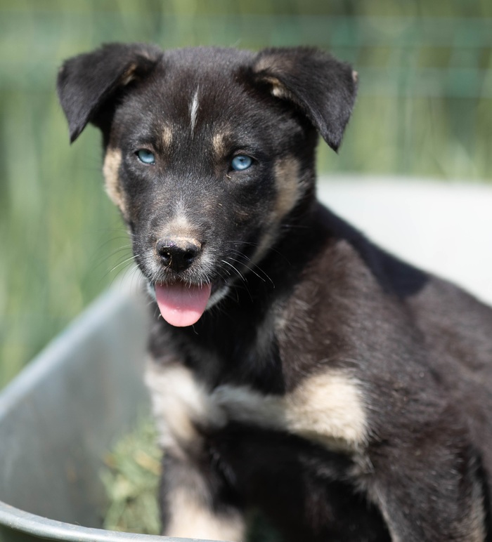 Напомним: девице 3 месяца от роду, метис хаски (сестра Миры - яркая голубоглазка). Егоза, любопытина и непоседа. Обработана и готовится к прививкам. Вырастет предположительно средней по размеру или даже чуть меньше (уж больно кроха с маленькими лапками в свои 3 месяца).