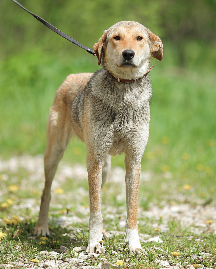 Виччи примерно 10,5 месяцев. Здоров, привит, уже кастрирован. Паспорт на лапах. Знание поводка и выгула. Сдержанное дружелюбие как к собакам, так и к кошкам. Поладит и с детками. Средний по размеру, примерно по колено.