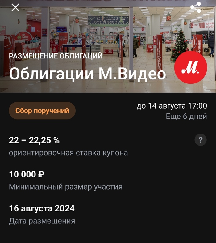 Заканчивается один выпуск облигаций М.Видео, начинается очередное размещение облигаций.