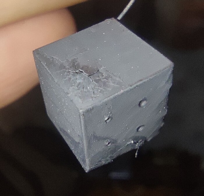 Естественно, не обошлось без трудностей: аэрограф забился, краска пролилась, я макнул в неё кубик, и слой краски на нём оказался неравномерным. Потом, когда я сушил краску в духовке, она вспучилась: