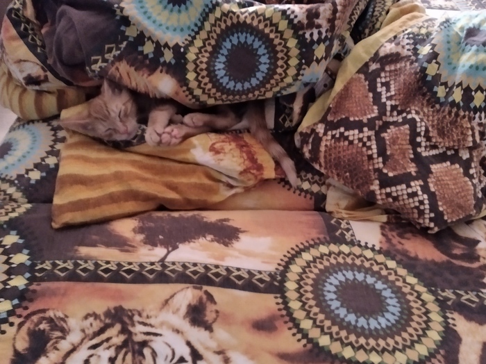 Странный кот, очень высокий и статный, громко мурчит, жратву не выпрашивает, деловит и спокоен как танк.