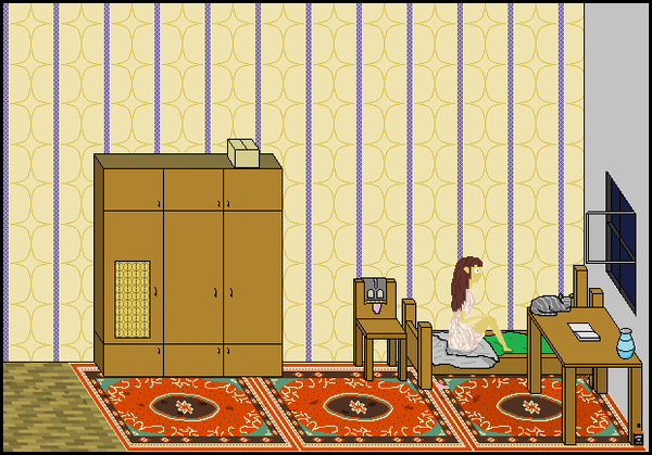 Она полностью скрылась под одеялом и попыталась уснуть. Ну шуршит... Может быть, кот? Да, точно, кот! Она почти успокоилась, высунула голову из-под одеяла, повернулась набок и встретилась взглядом с котом. Он подмигнул ей и свернулся калачиком на столе.