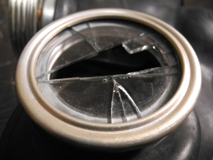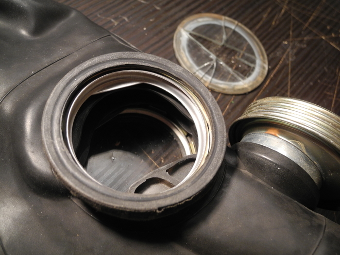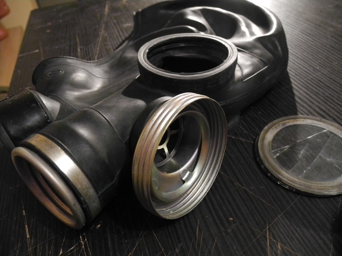 Всем доброго времени суток! Нашел я как-то раз на дорожке в промзоне достаточно редкую шлем-маску — ШМ70Р от противогаза ПРВ-М. Была она грязная, с разбитым стеклом, но главное — резина в отличном состоянии, разве что с мелкими трещинками. Шлем-маску я отмыл и принялся за восстановление. ПРВ-М — это противогаз, предназначающийся для ракетный войск, поэтому он имеет иную конструкцию клапанной коробки и переговорного устройства.