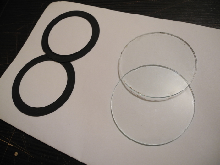 Приклеиваем стекла с колечками к внутреннему металлическому ободу с прижимными кольцами (служат для крепления незапотевающих пленок).