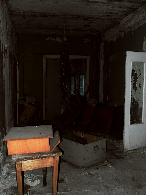В помещениях практически не осталось мебели — все либо вывезено, либо сломано. На стенах можно увидеть различные надписи и рисунки предыдущих посетителей. Лично я такой подход не одобряю и стараюсь даже лишнего звука не издавать, чтобы не нарушить царящую в здании атмосферу, не говоря уже о каких-либо явных следах своего пребывания.