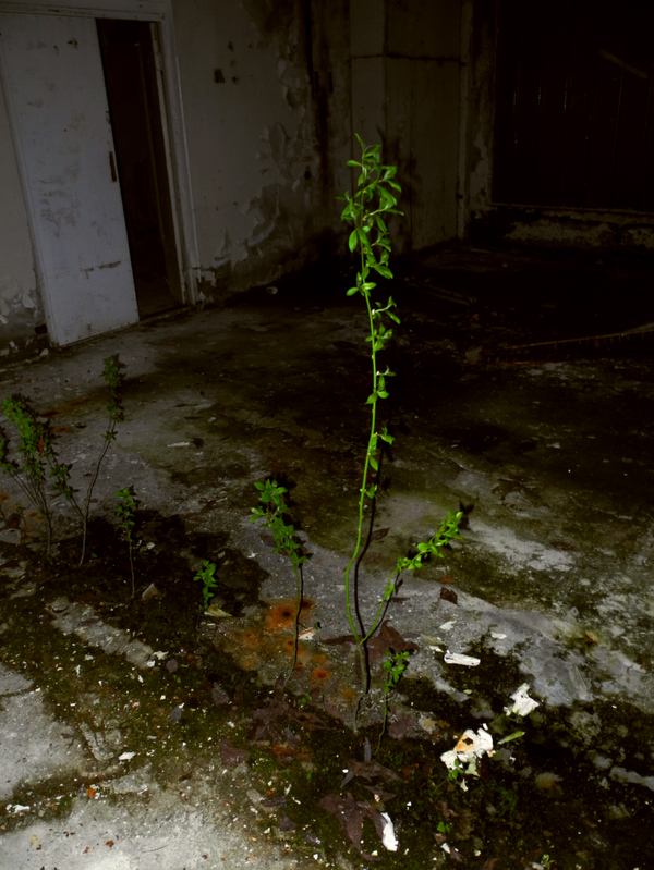 На бетонном полу некоторых помещений можно даже найти растительность.