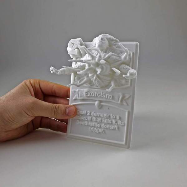"Изгнание нечистой силы" или "Экзорцизм" карта победила в этом конкурсе и MyMiniFactory создали 3Д-печатную версию для всего сообщества Heartstone