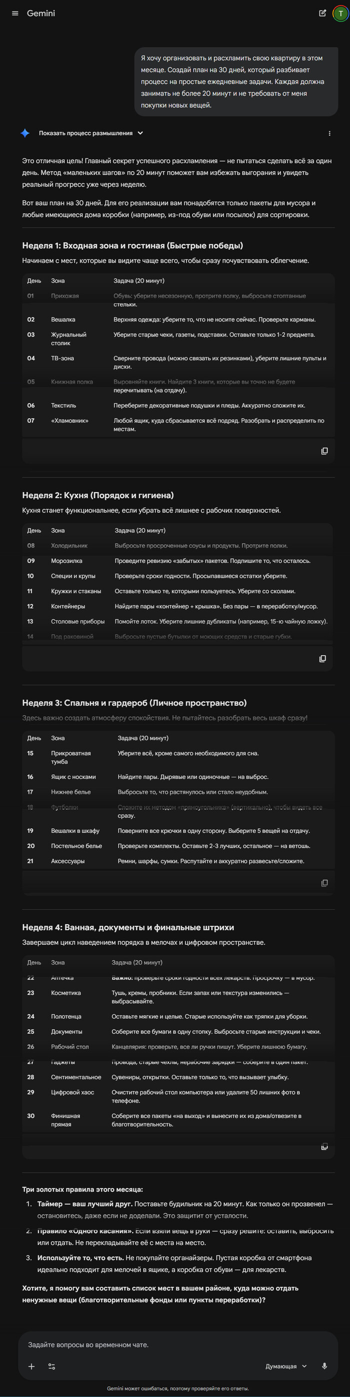 Нейросеть разобьет большую уборку или цель расхламиться на маленькие шаги. Так задача перестанет казаться неподъемной.