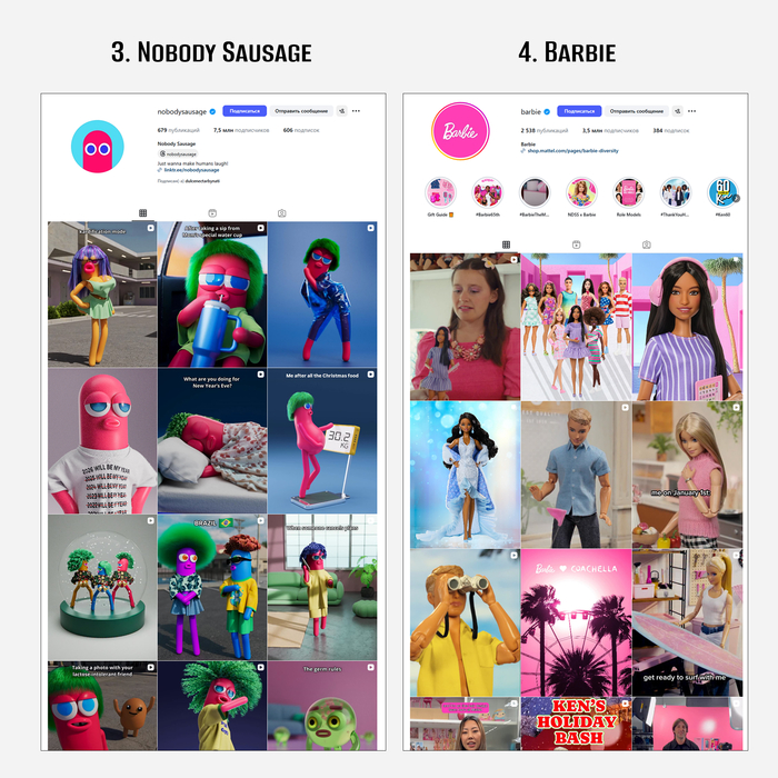 Смысл Барби в цифре в том, чтобы поддержать продажи линейки кукол - сейчас бренд приносит 1.7 млрд долларов в год. У Барби 32 млн подписчиков. Монетизация контента в YouTube приносит до 100 тысяч долларов в месяц. За один рекламный пост в соцсетях берет 15.4 тысяч долларов. Заказчики - люксовые бренды, производители косметики и одежды. Дополнительный доход поступает с мобильных игр и кино.