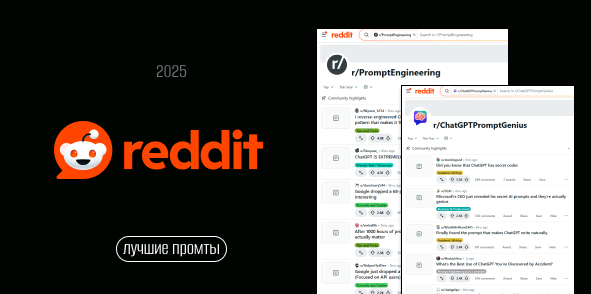 Это самое крупное в мире сообщество по промт-инжинирингу. Отсюда блогеры копируют промты в Telegram, TikTok и другие соцсети. На Reddit работает простая механика: наверх всплывают только лучшие промты — неочевидные, остроумные, сложные, остальные тонут в ленте. Я нашел самые популярные в 2025 году и собрал в одну подборку.