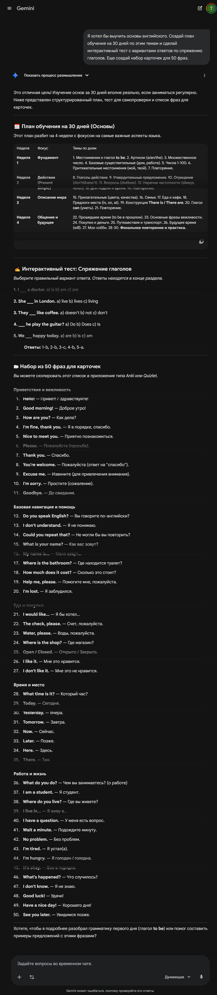 Опишите свою цель и сколько времени вы готовы на нее потратить. Gemini составит индивидуальную программу обучения, подготовит упражнения и проверочные тесты.
