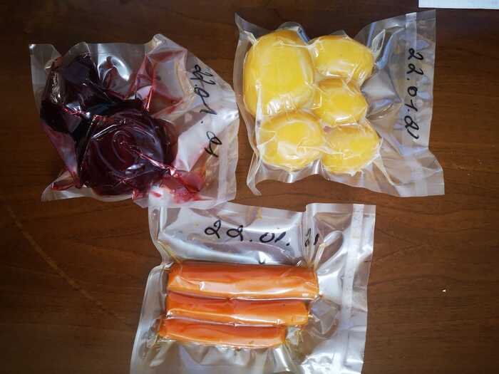 Но реторт пакеты бывают и прозрачные. Мы часто видим такую упаковку в сетевых магазинах, в неё фасуют овощи: Свекла, морковь картофель. Такой продукт очень хорош собой, так как не отдает свои соки в воду, как при варке. Бывает плёнка в которой хранится продукт всего 6 месяцев, но можно использовать особую технологию изготовления многослойной плёнки и сделать прозрачную упаковку, которая будет хранить продукт 24-36 месяцев при комнатной температуре.