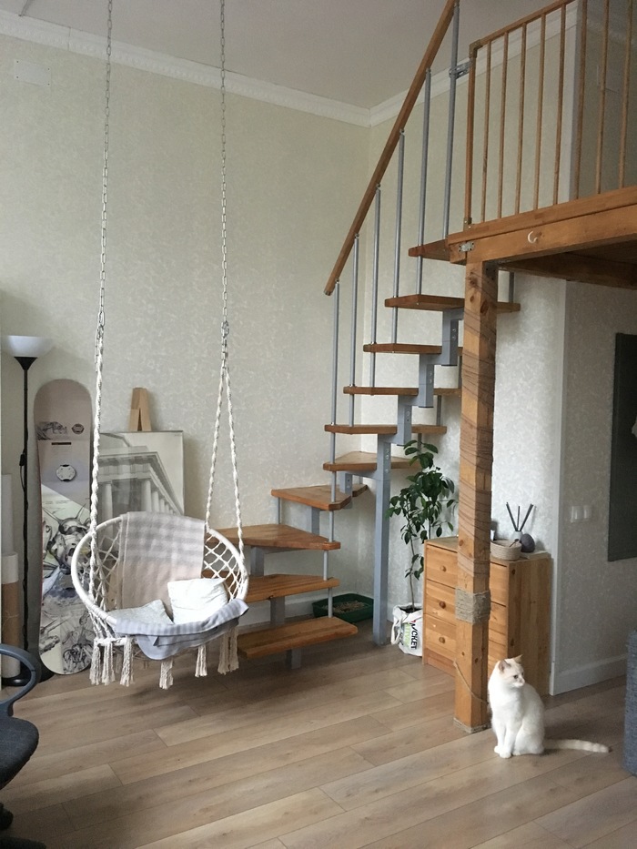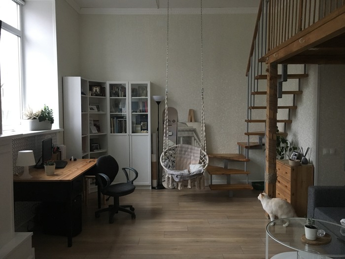 "Второй этаж" конечно сказано "громко" - для нас это спальное место. Квартира у нас площадью 36 м2, поэтому любые дополнительные метры идут в плюс. По итогу там 8 м2 (2.9м на 2.75м), высота до потолка 120 см. Такую высоту максимально, что получилось выжать из 345 см высоты квартиры, для комфорта внизу.