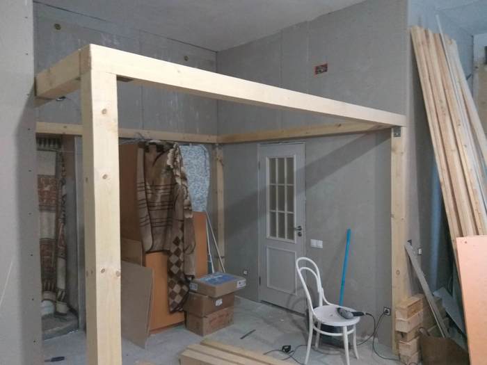 Плюсы: 1)Освобождается место внизу. 2)Разделяется визуально кухня, рабочее место, и место для сна. Когда кто-нибудь приходит в гости, необязательно заправлять постель).. ее не особо видно.