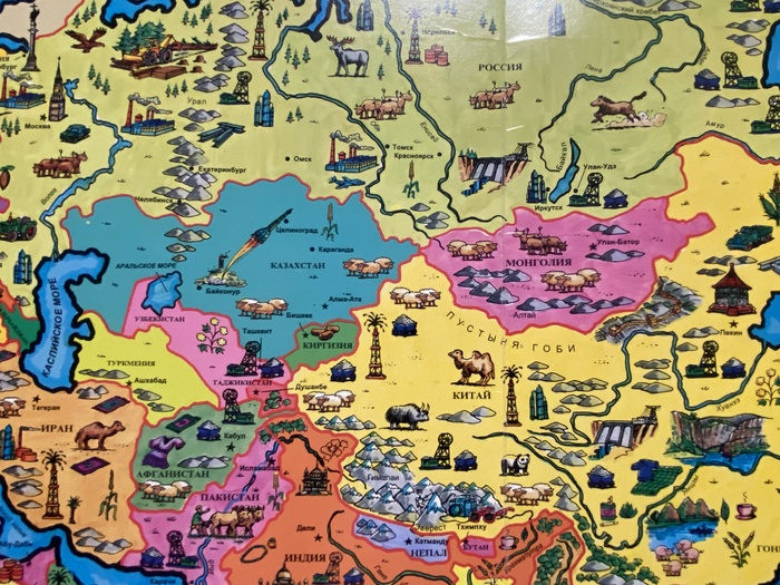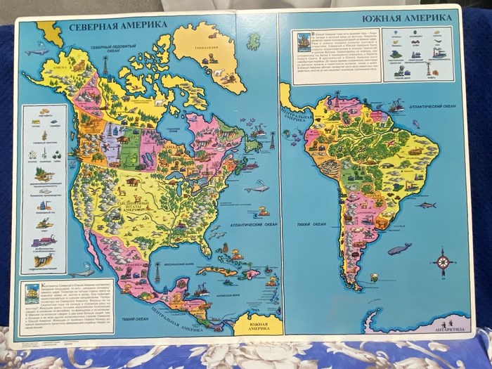 В далёком 1997 году, когда мне было 5 лет, появилась у меня замечательная штука - Атлас огромного мира. Это такая большая (на фото наручные часы для масштаба), иллюстрированная детская книжка из толстого картона, каждый разворот это части света с названиями стран, их столиц, рисунками некоторых животных которые обитают в этом регионе, а так же иногда с иллюстрацией основной деятельности в регионе. Откуда у меня появился атлас этот, уже не узнать - родителей нет в живых, а атлас потерялся при многочисленных переездах в 2000х, это была буквально трагедия для меня тогда. Кто то наверное подумает что ну книжка и книжка, ничего особенного, но тогда, в детстве так сложилось, что уже в таком малом возрасте я часто мог остаться один в доме до глубокой ночи, а родители где то пропадали, было страшно и эта книга единственная штука которая меня успокаивала, я часами напролёт разглядывал картинки и флаги, бывало, что так и засыпал на полу рядом с атласом, возможно по этому у меня такие сильные воспоминания связанные с этой вещью...