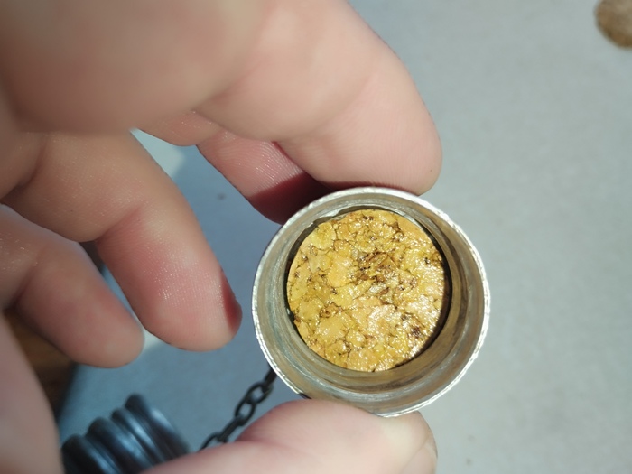 Мне пришлось ее приклеить. Для того чтобы извлечь приклеенную пробку я нагрел в воде крышку фляжки.